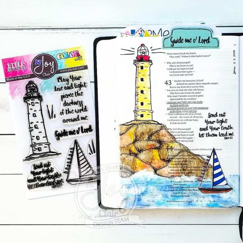 I chose Psalm 43:3 “Send out Your light and Your truth; let them lead me; let them bring me to Your holy hill and to Your dwelling!” (English Standard Version) to journal due to the scripture stamp included in the set.  I love the theme of the Lighthouse and asking God to let His light and truth lead us!